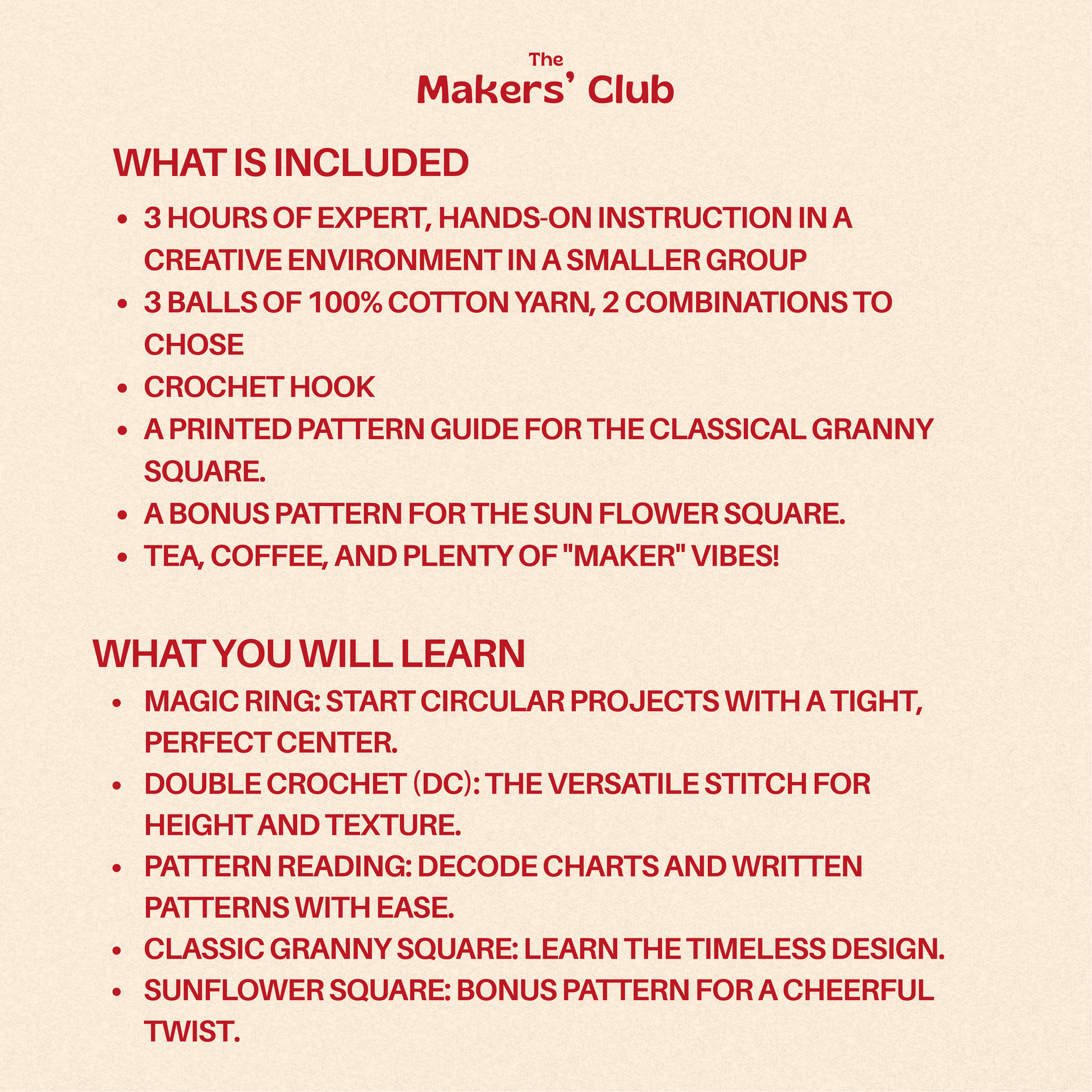 - Pattern Reading 101: We’ll demystify crochet charts and written patterns so you can confidently start any project on your own.